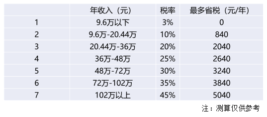 值得一提的是,许多人对于个人养老金投资带来的税收优惠政策也非常感兴趣。对此,通过根据相关政策的梳理,我们可以对照下表,得出每年的节税金额。