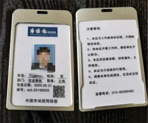 任何单位不得以人民日报、中国能源报、市场报网络版名义制作工作证件,对于制作、持有上述证件者,后果自负。