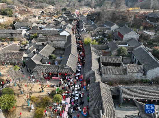 1月23日,市民和游客在盱眙第一山历史文化街区游玩(无人机照片)。