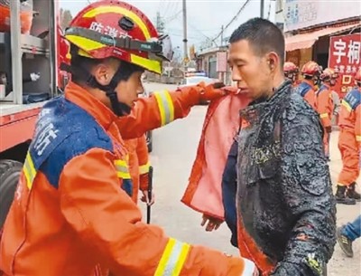 此时距离老人被困已过去将近两个小时,值得庆幸的是,获救的老人并无生命危险。救援的消防员变成了“半个泥人”,身上橙色的救援服裹满了黑色的污泥,看着叫人心疼。
