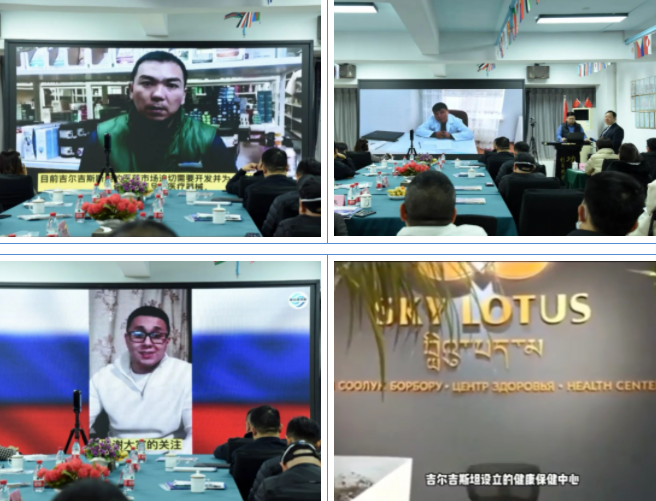 哈萨克斯坦东方传统医学中心富院先生。吉尔吉斯斯坦CUS-STORY公司总经理周莉女士。吉尔吉斯斯坦CUS-BISHKEK公司总经理梁政先生。匈牙利注册中医师、高级针灸师、世界禅医联合会理事、中东欧中医联合会理事、北京帝恩国际中医研究院副院长赵绍峰先生等通过视频连线的方式对海外中医药及医疗健康产品市场情况进行了介绍。