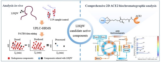 厦门大学科研团队在连花清瘟防治新冠肺炎药理活性成分研究方面取得新进展,基于高分辨质谱(HRMS)和智能非靶向数据挖掘以及全新的血管紧张素转化酶2(ACE2)生物色谱技术,成功鉴定体内连花清瘟85个相关成分,其中苦杏仁苷、野黑樱苷、甘草酸、连翘苷A、连翘苷I、大黄酸、芦荟大黄素等都与ACE2有亲和力,通过墨蝶呤还原酶(SPR)、ACE2活性抑制和分子对接实验进一步进行活性评价,发现大黄酸,连翘酯苷A,连翘酯苷I,新绿原酸及其异构体均对ACE2具有较高的抑制作用。这些化合物可通过阻断新冠病毒S蛋白与ACE2结合以及结合在新冠病毒S蛋白-ACE2复合体表面抑制SARS-CoV-2,协同发挥治疗作用。