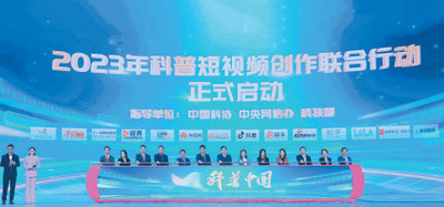 本报北京3月29日电 (刘俊、温超)近日,在“典赞·2022科普中国”揭晓盛典上,2023年科普短视频创作联合行动启动。该行动由中国科协、中央网信办、科技部联合指导,科普中国、学习强国、中国科普网、人民日报视频客户端、新华网、央视频、光明网、抖音、快手、新浪、知乎、哔哩哔哩、网易、腾讯等14家网络平台共同发起。