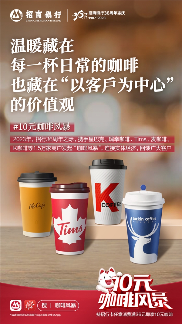 据了解,招商银行信用卡“咖啡风暴”活动从2023年4月8日持续至4月18日。活动期间,持卡人在掌上生活App搜索“咖啡风暴”便可直达活动页面,消费满额即有机会享受“10元喝咖啡”优惠。无论是线下刷卡购物,还是线上绑卡手机支付,持卡人只需使用招行信用卡消费满36元,就可获得活动资格。