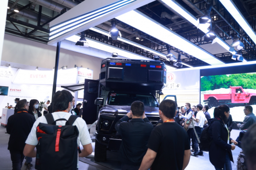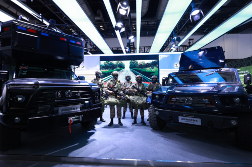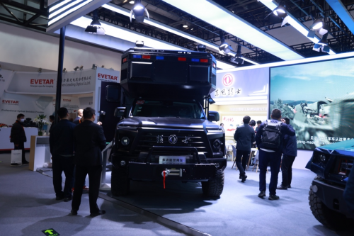 4月21日-23日,第八届中国(北京)军事智能技术装备博览会在北京国家会议中心正式举行。本次大会以“天地一体网络融合,联合全域智能协同”为主题,以指挥与控制为主线,突出军事智能化,为行业展示智能技术装备领域的新成果,共同探索军事智能领域未来的发展趋势和方向。东风越野车携旗下两大越野装备平台产品——东风猛士MS600系列多功能警用车及东风猛士逆行者500系列近程激光防御车参加此次展会。