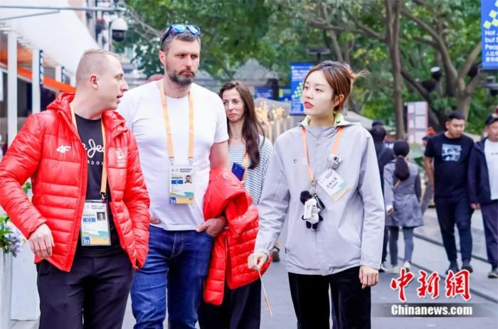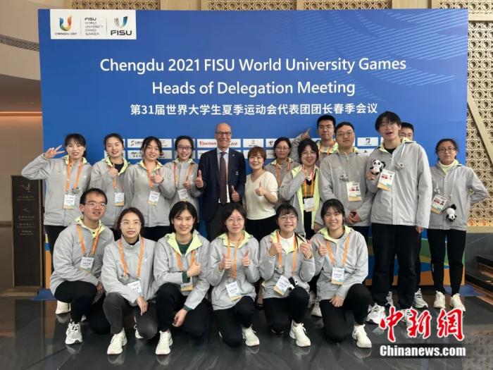 春团会期间,志愿者为代表团官员提供志愿服务,协助其考察大运会场馆及了解成都。成都大运会执委会 供图
