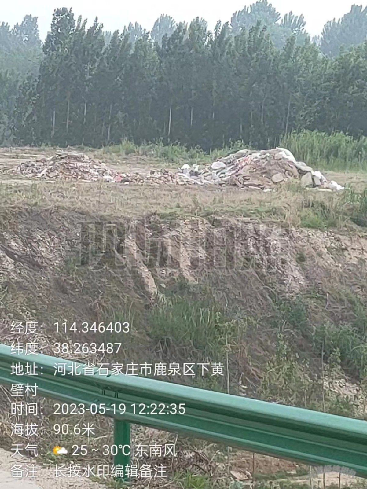 石家庄市鹿泉区黄壁庄镇公园边 垃圾为何不覆盖?风一吹后果可想而知...