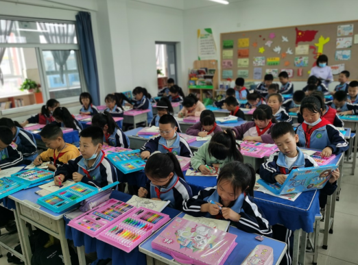 由北星小学美术老师在4(2)班,利用捐赠的美术包物料,同步为该班学生开展了“学画农民画”美术课。