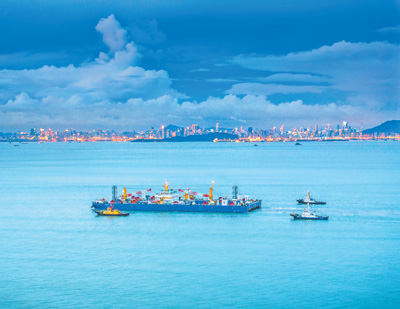 最后一个管节和最终接头正进行沉放对接。 |