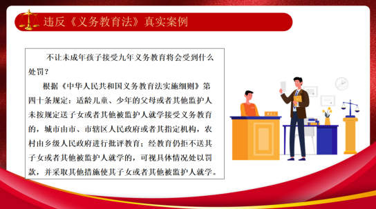 讲座中,张浩昊向师生重点宣传讲解《义务教育法》《未成年人保护法》等与少年儿童密切相关的法律法规条款及相关知识,运用通俗易懂的语言,形象生动的案例向同学们深入浅出地讲解和阐述,以案说法,以例释法,感染力强,用“法律”浸润每一个学生的心田,给乡村学生上了一堂生动的法治课,极大地提升了师生法律意识,营造了浓厚的学法氛围。他希望同学们珍惜校园美好时光,在校遵守校规校纪,远离罪恶,远离危害,做一名学法懂法守法用法的新时代青年。