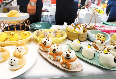 在日前举办的2023全国预制菜产业大会上,1200余家餐饮经销展商携各种美食参展。图为会上展示的卡通动物主食。 |