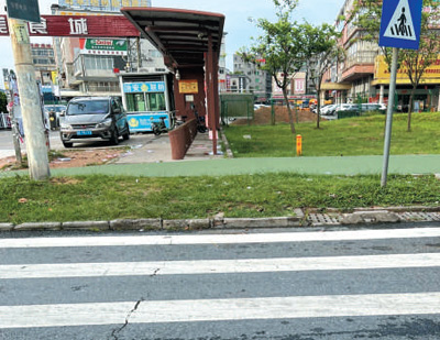 广东佛山市南海区狮山镇小塘三环西路洞边美食城附近的斑马线与人行道没有衔接,中间还隔着一条绿化带,行人过马路需踏过绿化带才能走斑马线,既破坏绿化带又影响通行安全(见图)。希望有关部门引起重视,尽快到场勘查处理,保障群众出行。