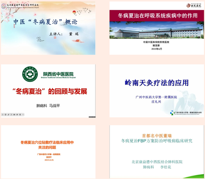 开幕式结束后,大会开展了线上学术报告和学术交流活动。董瑞主任委员做了《中医冬病夏治概论》的学术报告,中国中医科学院西苑医院樊茂蓉教授、陕西省中医医院马战平教授、广州中医药大学第一附属医院庄礼兴教授、广西中医药大学第一附属医院宾博平教授、北京康益德中西医结合肺科医院李壮花常务委员分别做了《冬病夏治在呼吸系统疾病中的应用》《“冬病夏治”的回顾与发展》《岭南三伏天灸介绍》《冬病夏治临床应用中关注的问题》《首都名中医董瑞冬病夏治FBP方案防治呼吸病临床研究》的学术报告,在线的顾问、副主任委员、常务委员、委员们进行了互动交流。