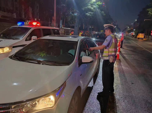 交巡警大队在城区主要交通干道、路口设卡盘查,严查酒驾醉驾毒驾、无牌无证车辆、“一盔一带”等各类交通违法行为,对过往车辆、司乘人员进行检查,严查各类违法犯罪,最大限度消除安全隐患,确保道路交通安全有序。