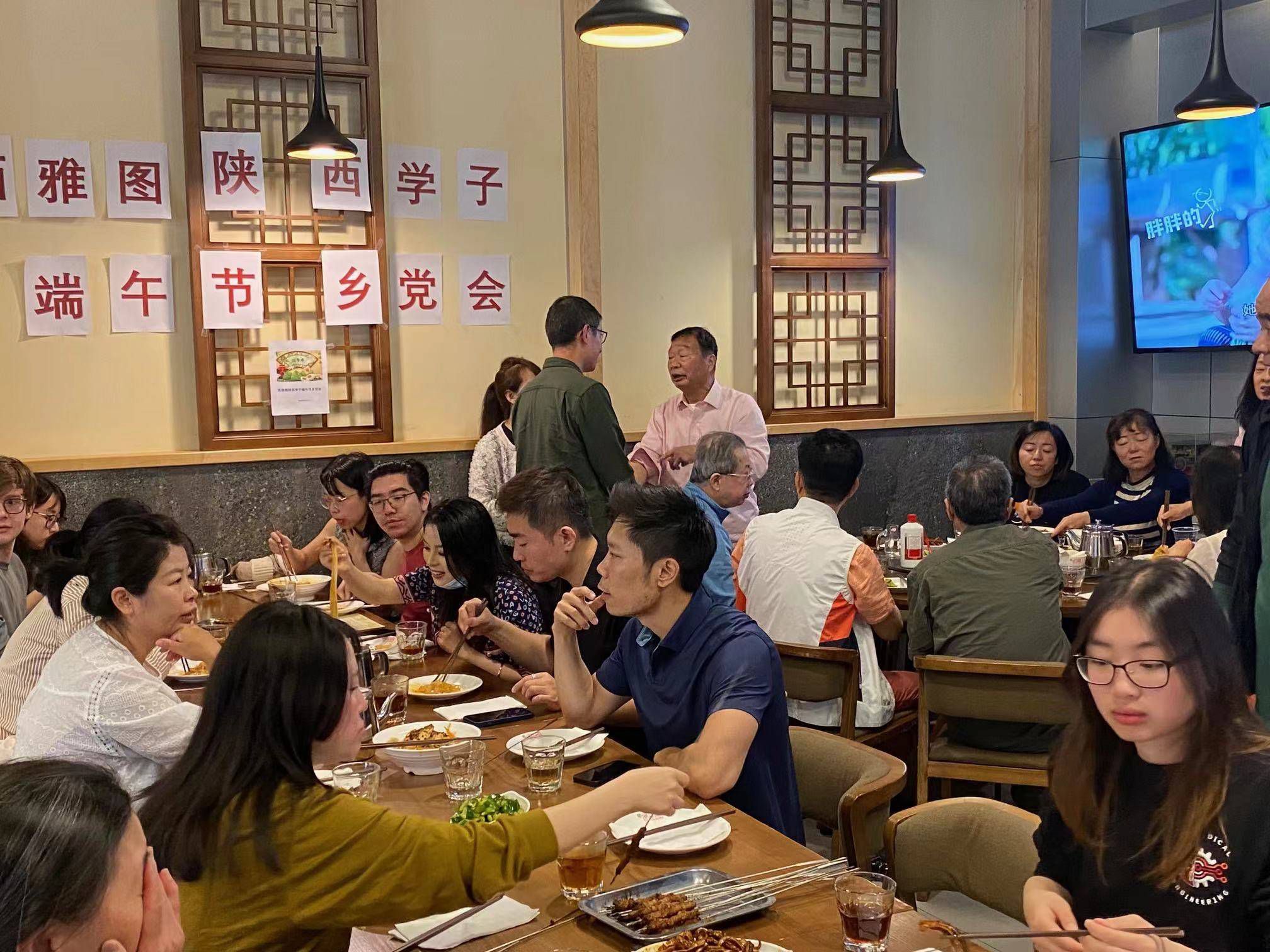 在2023年的端午节那天,华盛顿大学University Avenue所在的西安味道餐馆热闹非凡,这里正在举办一场特殊的联谊会。这是由505集团公司总裁来辉武主办的,邀请了华盛顿大学及其他高校的二十多名陕西学子及其家属参与的“西雅图陕西学子端午节联谊会”。此外,世界日报前总编汪大群、台湾地区贝尔斯商会会长杨鼎、西雅图台湾地区商会会长苏鸿庆、西华艺术团理事长、知名中医王亚娟等人也出席了此次联谊会。