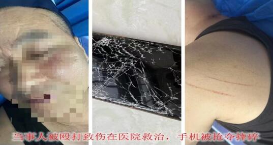 当事人用手机拍摄现场,被执法人员发现抢夺手机。报警后,综合执法大队带队人让剩余着黑色综治巡逻衣服的人员离开,不承认他们人员抢走了录像的手机,在德源镇派出所出面沟通下,19:50左右返至案发地寻找手机,找手机期间,综合执法大队人员几次说到可能是过路人捡走了(派出所民警执法记录仪为证),后就离开了案发地。当晚23:10左右家人又返至案发地仔细寻找,苗圃工人说已找到手机并归还,但这时手机已被利器砸的弯曲,摄像头和屏幕已被砸的面目全非。