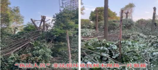 2023年7月21日下午,在成都市郫都区德源镇东林村16组村民徐开武种植十多年的树木苗圃地里,当地综合执法队突然来了全副武装身穿制服60多人,在没有任何提前告知、任何身份出示、任何文书手续的情况下,对高压线周围树木苗圃进行非法破坏,强伐树木,他们将苗圃打围近8亩多地的树木全部破坏,现场一片狼藉。