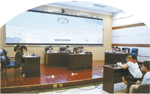 “在模拟庭审环节,我扮演的是审判长,我切实感受到法律的庄严和违反法律的严重后果。”近日,湖北省武汉市汉阳区检察院“知音·雨露”未检工作室联合共青团汉阳区委共同开展“法治夏令营·青少年模拟法庭”活动,30名中小学生扮演起了公诉人、法官、法警、辩护人、被告人等不同角色。在活动现场,检察官还向孩子们介绍了汉阳区检察院的检察文化、各内设部门职能、未成年人检察工作情况等。