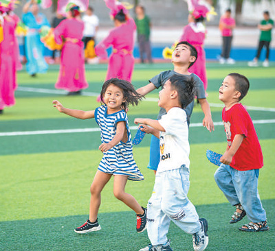 8月9日,小朋友在黑龙江省五常市时代中学集中安置点玩耍。 |