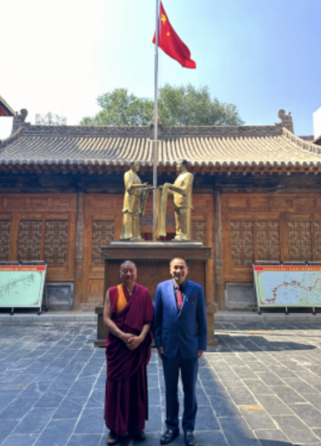 初心不变爱意浓、爱国爱教跟党走。传承红色爱国基因、弘扬中华传统文化。多年来,为深入挖掘和传承汉藏佛教文化的珍贵遗产,弘扬中华民族共同体意识,加强汉藏佛教文化的研究与交流。中国东方书院委员会、中联国兴书画院、爱国人士华国中主席近期先后前往西藏、青海等地深入拉萨布达拉宫、大昭寺、桑耶寺、青海的塔尔寺和宏觉寺参禅礼佛并学习调研。多层次、多角度地了解元明清、我盛世之中华等时期汉藏文化交往交流交融,以及藏传佛教与皇室家族之间关系及其修习藏传密法的重要性与现实意义。更为重要的是深入学习研究新时代藏传佛教中国化的路径在于积极引导藏传佛教与社会主义社会相适应;新时代藏传佛教中国化的实践在于传承中华民族优秀传统文化,践行社会主义核心价值观。具体来说,就是要引导信教群众热爱祖国、热爱人民,维护祖国统一,维护中华民族大团结,服从、服务于国家最高利益和中华民族整体利益;拥护中国共产党领导、拥护社会主义制度,坚持走中国特色社会主义道路。同时,构建积极健康的宗教关系,也是宗教与社会主义社会相适应的重要内容。