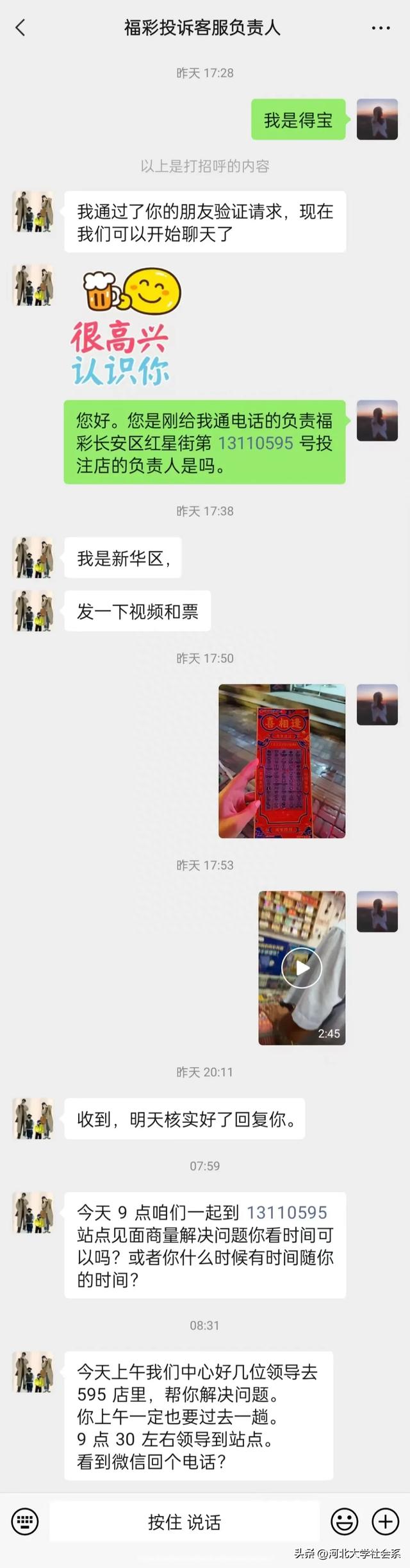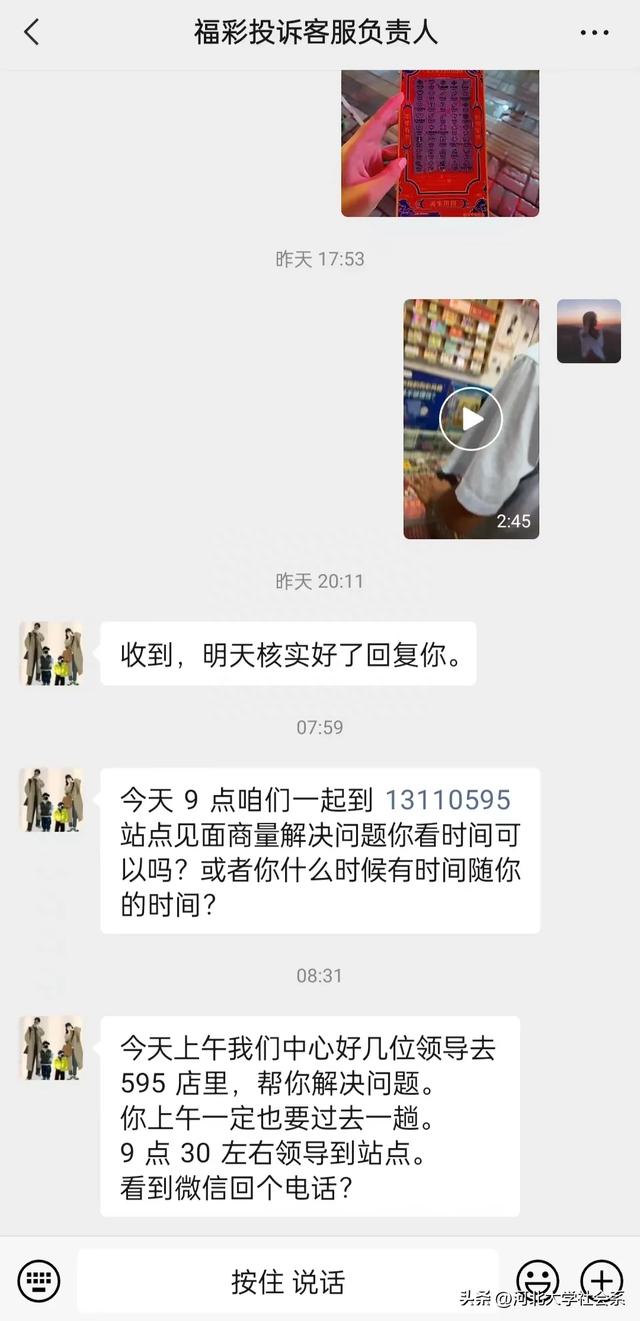 在警察的协调下店主很不情愿将彩票归还于我,我至今没有兑奖,我纳闷的是不是别的消费者也忽略过彩票中奖金额, 也同样被坑过 。在此提醒彩民朋友:在购买彩票中奖后一定要看清楚中奖金额,不要被无良彩票店蒙蔽。河北省福利彩中心客服8月16日加我微信,要了我买的彩票彩种图片以及在店里起争执的视频,客服说给彩票店一个口头警告,等明天给我个说法,给我两个水杯 ,让把这个事消停了。现在客服又让我去彩票店解决。