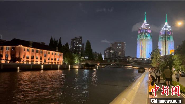 普陀区苏州河段是苏州河流经最长的区段,夏日晚间,环球港双子塔璀璨的灯火外衣,倒映在苏州河上的塔身掠影,都在述说着苏州河沿岸时代的历史记忆;步道边多样化的公共设施又是城市发展的见证,吸引了众多市民前来打卡。