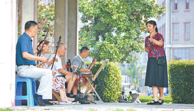 近年来,安徽省铜陵市义安区依托暖民心行动,为民办实事,在全区各类老年大学(学校)开设戏曲公益课堂,为爱好戏曲的老人传授技艺。图为近日,在义安区五松镇万鸡山社区,老年戏曲爱好者在排练中。