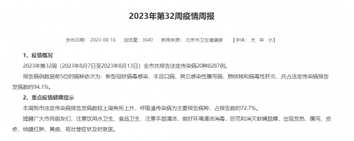 [1]北京市疾病预防控制中心——2023年第32周疫情周报