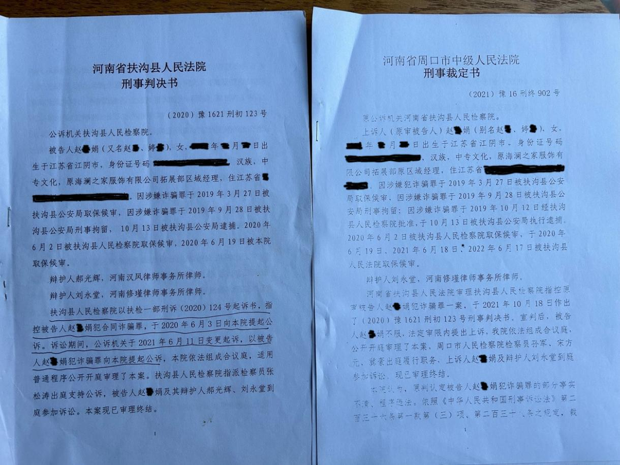“案件折腾四年多事实没有认定清楚,多次变更起诉金额和罪名,把我全家折腾得无法生活。一审被判四年,被驳回至今无果”2023年7月18日,海澜之家服饰有限公司拓展部原区域经理赵某娟把自己的案情反映情况递交到了河南省委第十二巡视组,目前巡视组已经接收到了赵某娟的反映问题材料。