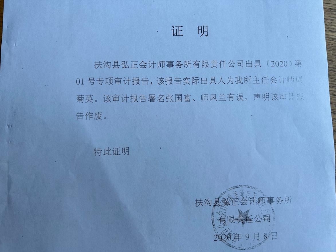 在第二次开庭时,扶沟县宏正会计师事务所为了免受制裁,证明该所出具的(2020)第01号专项审计报告系该所主任会计师周菊英,审计报告签署名张国富、师凤兰有误,声明该审计报告作废。当时的公诉人不得不承认该审计报告为非法证据,同意予以排除。