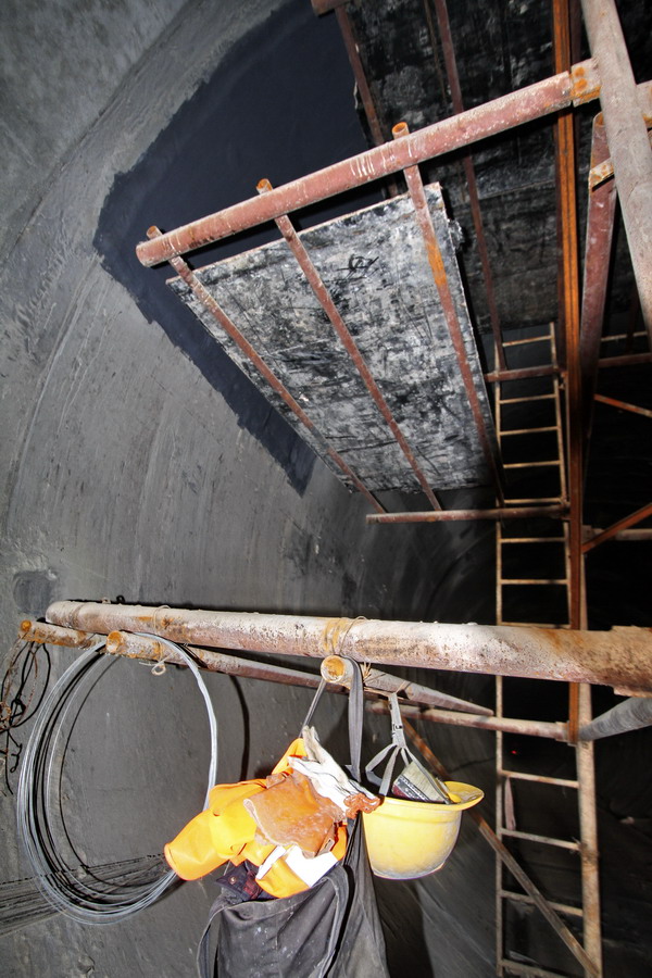 来了没几天就出事了,出事那天是6月19号,是因为他们在隧道里面用电钻往隧道壁上钻眼,当他看到工作面上有一脚踏板没有放好弄不好要是掉下去会砸着人的,于是就扶着栏杆弯腰去收拾,没想到。栏杆焊的不结实,一下就掉在了离地面五六米的水泥地上,当掉下去的那一瞬间,他脑子就闪现出俩字“完了”,没想到还是自己顺手拿了别人的一个工作头盔保住了他的命,要是带公司发给自己那个安全帽的话肯定就死定了。
