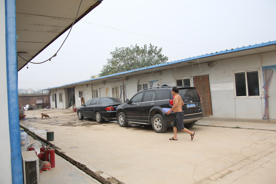 这就是项目部总部,除了几部“豪车”外就是一排排的临时建筑。