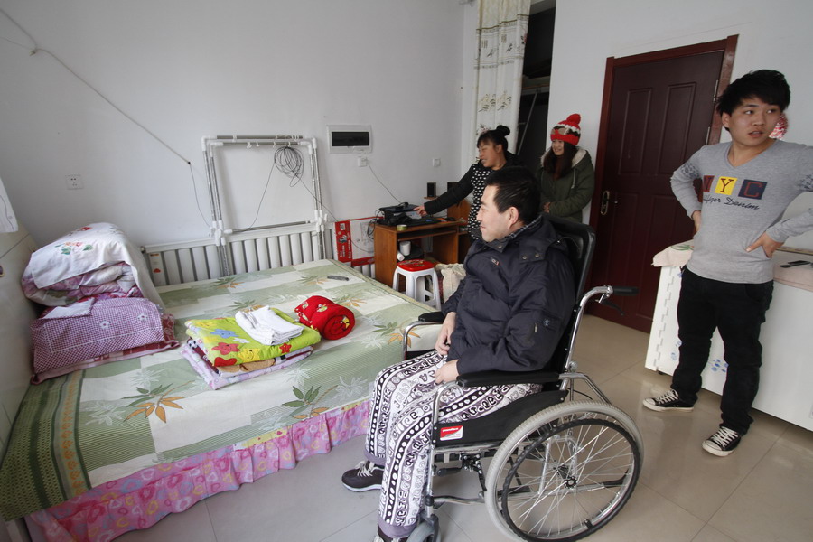 每天可以坐着轮椅去医院做康复治疗。