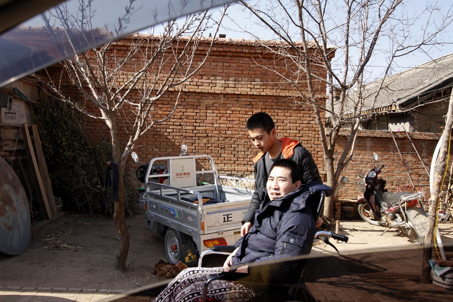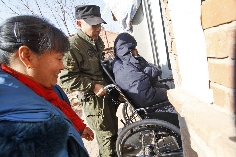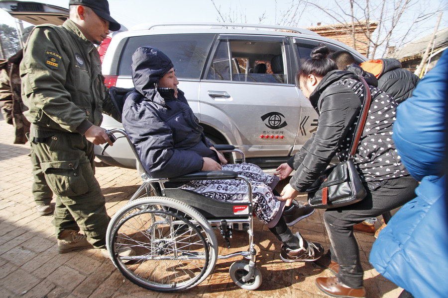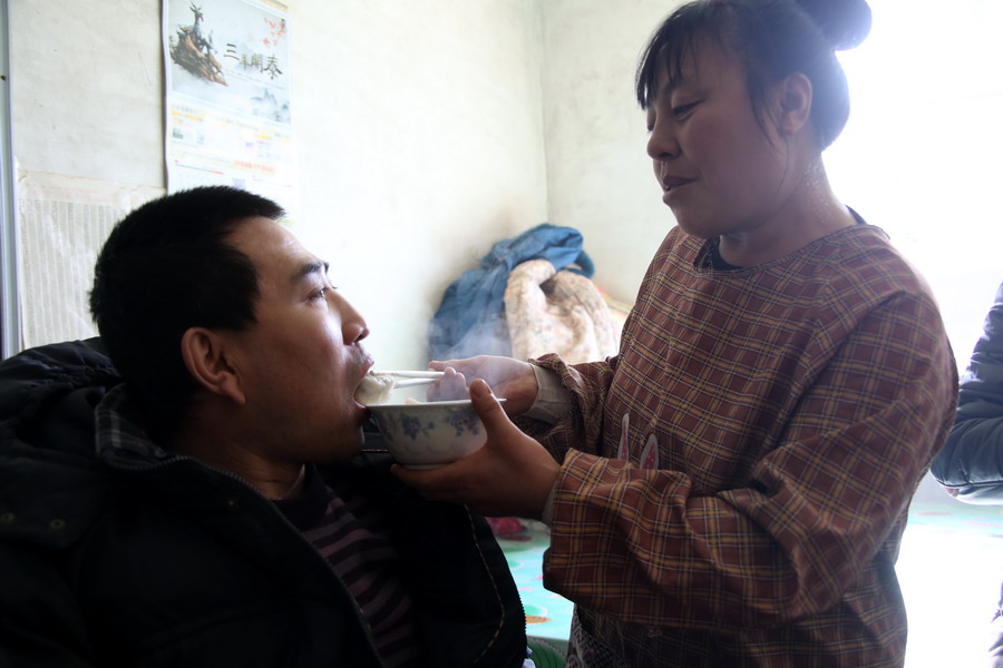 临走时,虽然张义良浑身不能动,在告别时,他流下来感激的泪水。