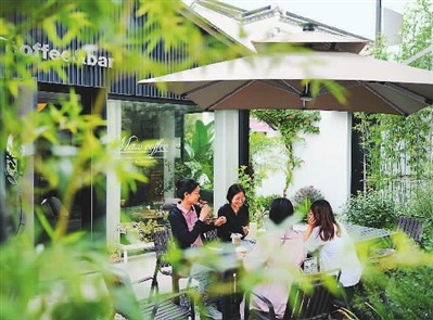 游客在浙江省湖州市八里店镇潞村一家咖啡馆休憩。 |