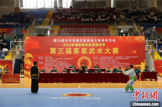 此次客家武术大赛由福建省体育局指导,宁化县人民政府、三明市体育局、福建省武术协会、台湾体育总会武术协会联合主办。(张煌鹏 张炜婷)