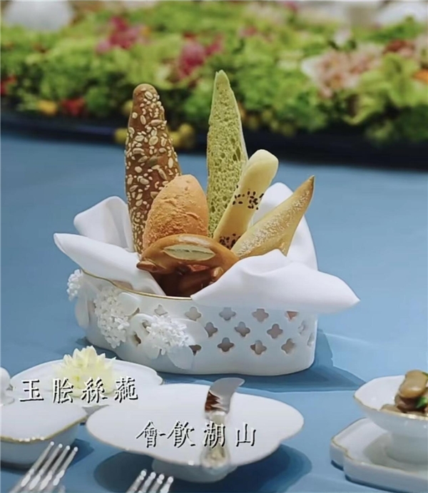 五洲御瓷为杭州亚运会国宴定制的面包篮和黄油碟【良渚谷物面包】