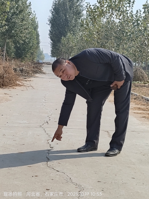 实名举报:李村镇后东毗村支书:张晓舟,2022年2月份修后东毗村北庄村北移民办公路项目过程中,大约四百多米,徇私舞弊,交给没有施工资质的:康艳飞、【本家亲戚】施工,施工过程中偷工减料,厚度不够,使用自制搅拌灰,致使道路多处出现裂纹,直到现在路口一直用(制宽)路障阻挡大车经过。