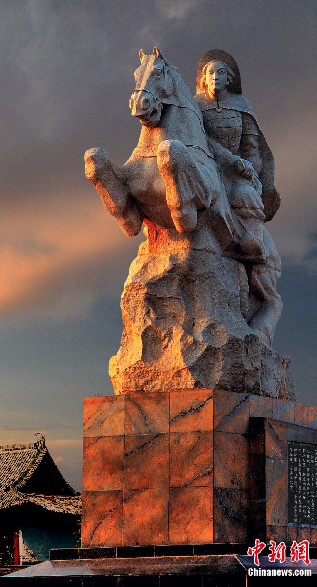商丘虞城县木兰祠景区木兰跨马从军雕像。苏新诗 摄