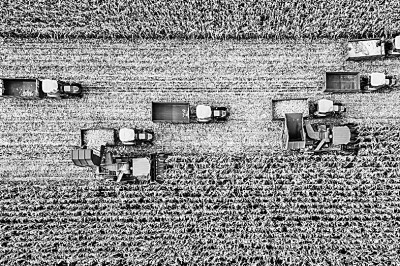 “轰隆隆……”在海伦市东林镇富兴村一处大豆种植地块,三台现代化大马力收割机正在满负荷作业,一排排沉甸甸的豆荚被收入机器中,收割、切割、粉碎、脱粒、装车等工序一气呵成。为确保大豆颗粒归仓,这些大马力机械采取联组作业的模式整片推进,提高机械作业效率的同时,也加快了秋收进度。“平均亩产达400斤,有的地块亩产有望突破500斤。”东林镇富兴村农业种植合作社理事长陈维友说。