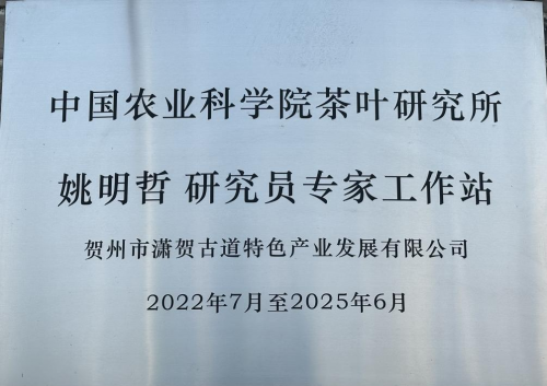 2022年7月,在中国农业科学院茶叶研究所,广西茶叶科学研究所强大的科研技术支撑下,成立中国农业科学院茶叶研究所姚明哲研究员专家工作站。该专家工作站为潇贺古道公司特色茶叶品种研究、开发利用、种苗培植、茶业科技、加工与销售等业务提供创新科技,成为公司快速发展的孵化器。