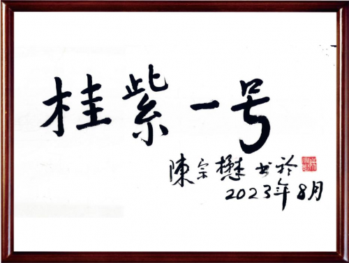 2023年8月,喜获中国工程院院士,中国茶叶研究所原所长陈宗懋为公司新选育的茶树品种“桂紫1号”题字。