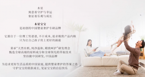 木星宝宝是一个上海理工男爸爸创立的婴童奢护品牌,秉承“天然有机、纯净温和、精致呵护”的研发理念,不计成本地甄选全球奢贵原料成分和先进的萃取技术,并坚持用中国品牌打造中国宝宝专研的高端护肤产品。