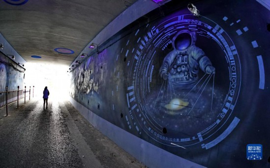 铁路地下通道经过安保数字化和环境改造后成为居民喜爱的“元宇宙时光隧道”(11月16日摄)。