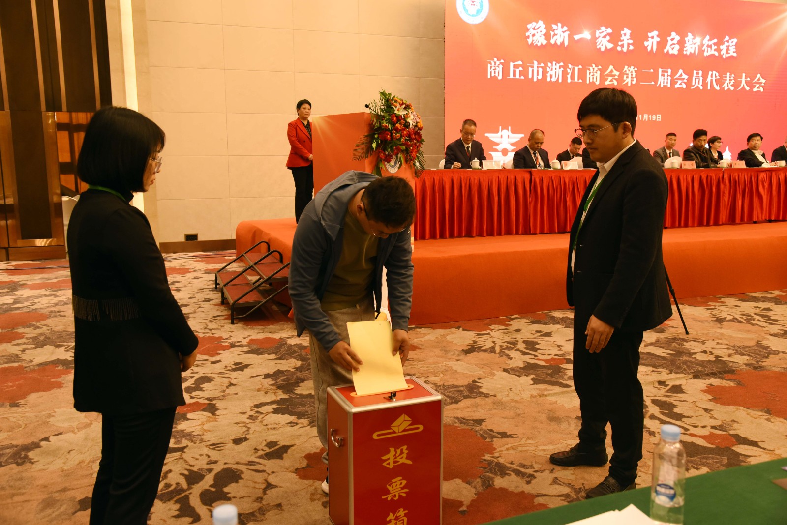 豫浙一家亲,开启新征程。 11月19日下午,商丘市浙江商会第二届会员代表大会在信华建国酒店举行。市政协副主席、市工商联主席吴英杰出席会议并讲话,会议由市委统战部副部长、市工商联党组书记张慧主持。市工商联商会建设工作委员会相关负责人全程参与会议。会议选举五洲万汇集团董事长林昌仁为市浙江商会第二届理事会会长。来自商丘市170家会员企业代表参加会议,共同见证商会成功换届。河南省浙江商会、河南省温州商会以及部分省、市的浙江商会负责人,河南省部分省辖市的浙江商会负责人到会祝贺。