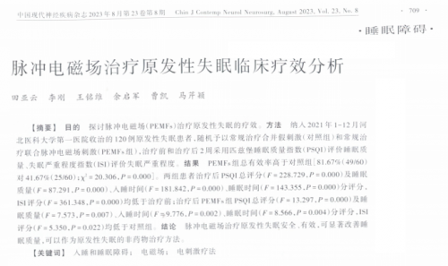 近日,国内一研究团队在《中国现代神经疾病杂志》上发布了关于“脉冲电磁场治疗原发性失眠临床疗效分析”的项目研究结果,探寻安全有效地解决原发性失眠问题的非药物疗法。