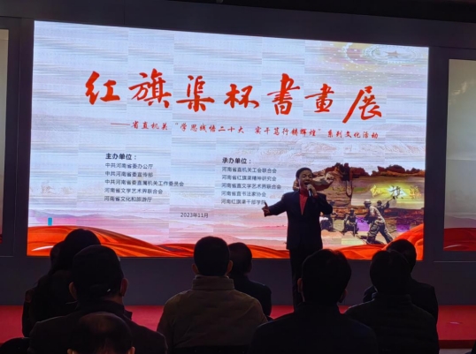 11月30日上午,为深入贯彻习近平总书记对宣传思想文化工作重要指示和考察红旗渠时的重要讲话精神,贯彻落实全省宣传思想文化工作会议精神,激励省直机关广大党员干部职工传承弘扬中华优秀传统文化和红色文化,展示新征程省直机关文艺事业新成就,“学思践悟二十大,实干践行铸辉煌”“红旗渠杯”书画展在河南省美术馆举行开幕式。