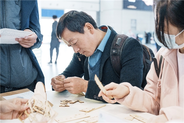 此外展厅现场的非遗文化体验活动,让旅客更直观近距离的感受到了非遗文化的魅力。微缩古建筑模型制作技艺传承人吴连男的运河帆船、狮子林台屏、苏作之窗等模型体验,让旅客在展厅就能感受一次中式榫卯拼接的美学智慧。