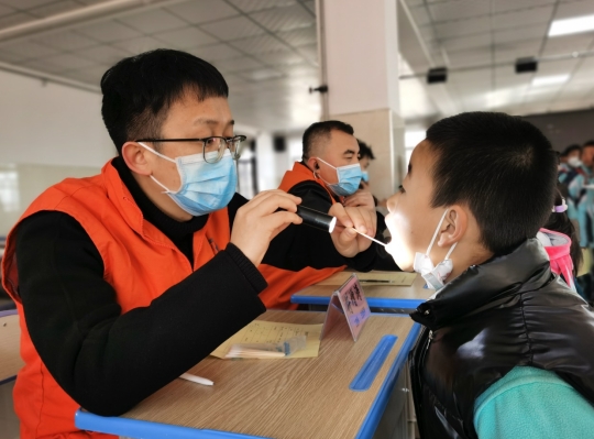 在小学二楼报告厅,由来自宝鸡市中心医院的医生们,为该校师生做了体检义诊。