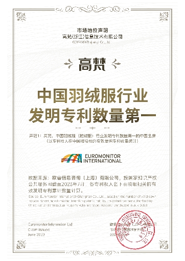 欧睿证明:高梵是中国羽绒服行业发明专利数量第一